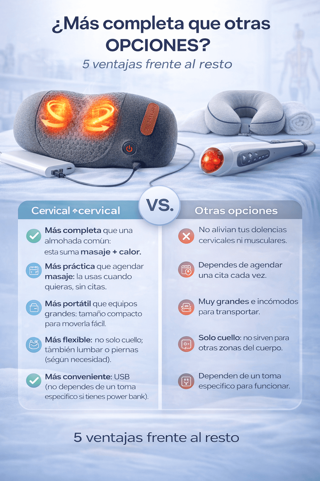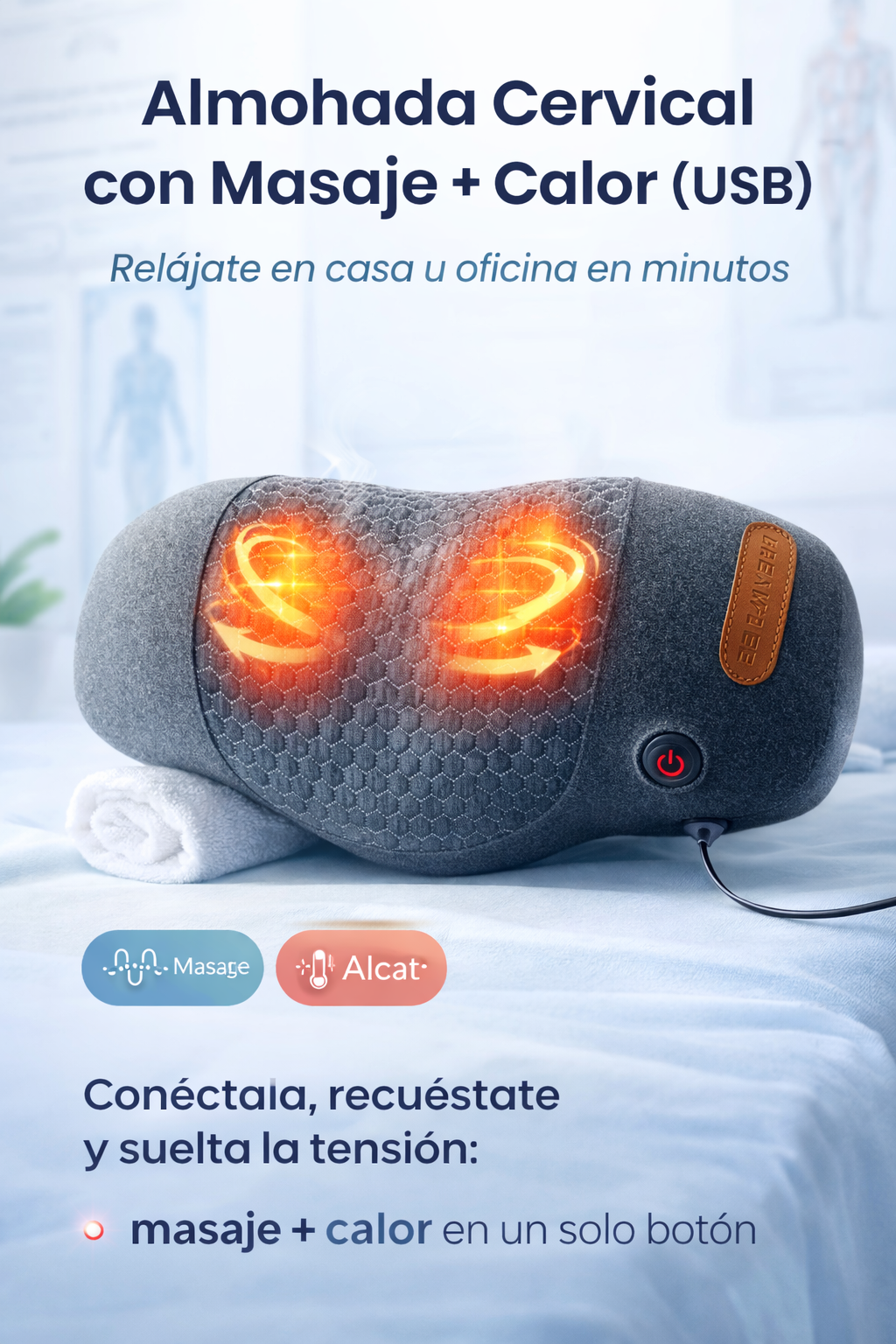 Almohada Cervical con Masaje + Calor (USB): relájate en casa u oficina en minutos