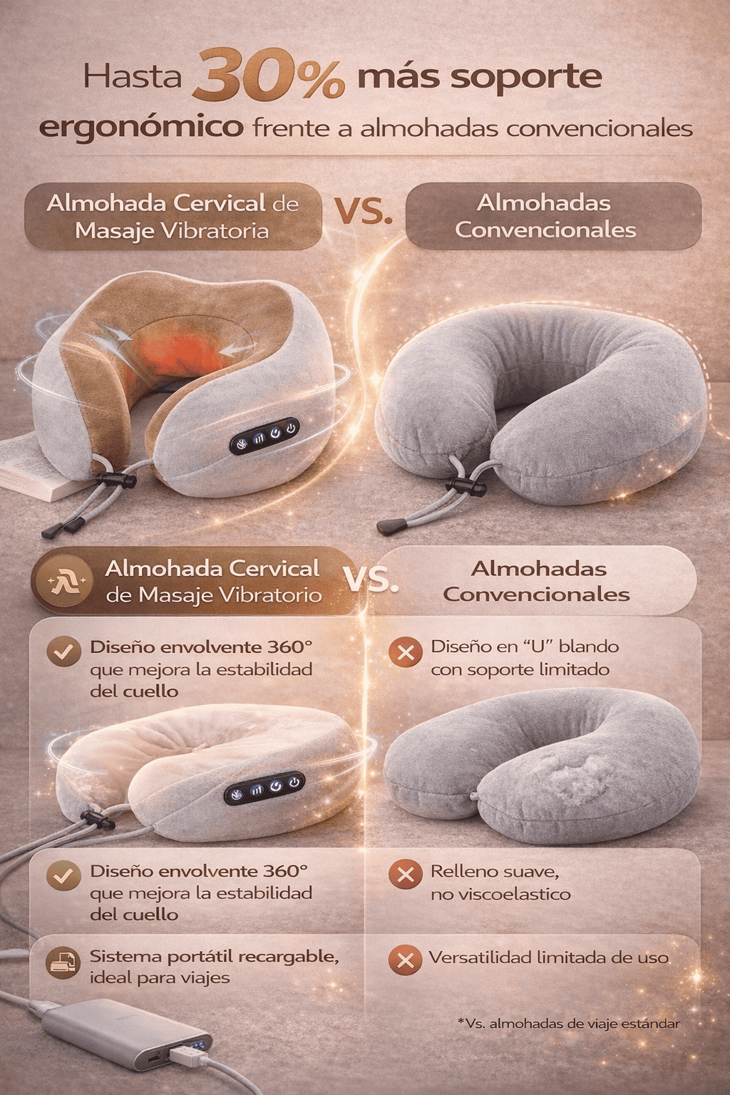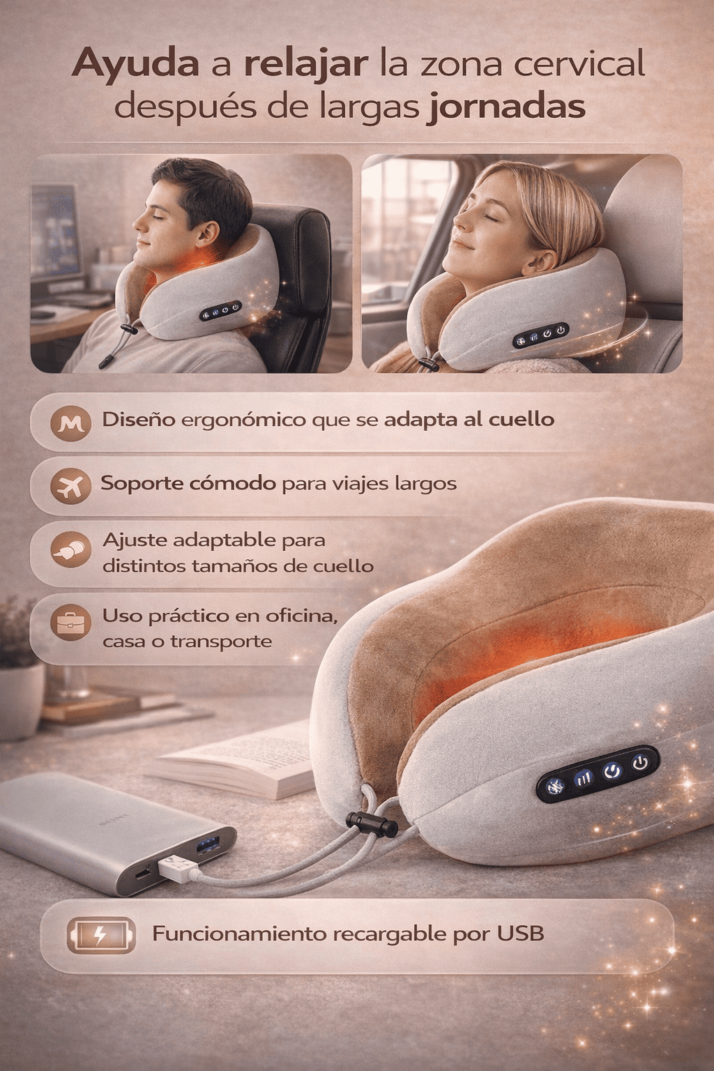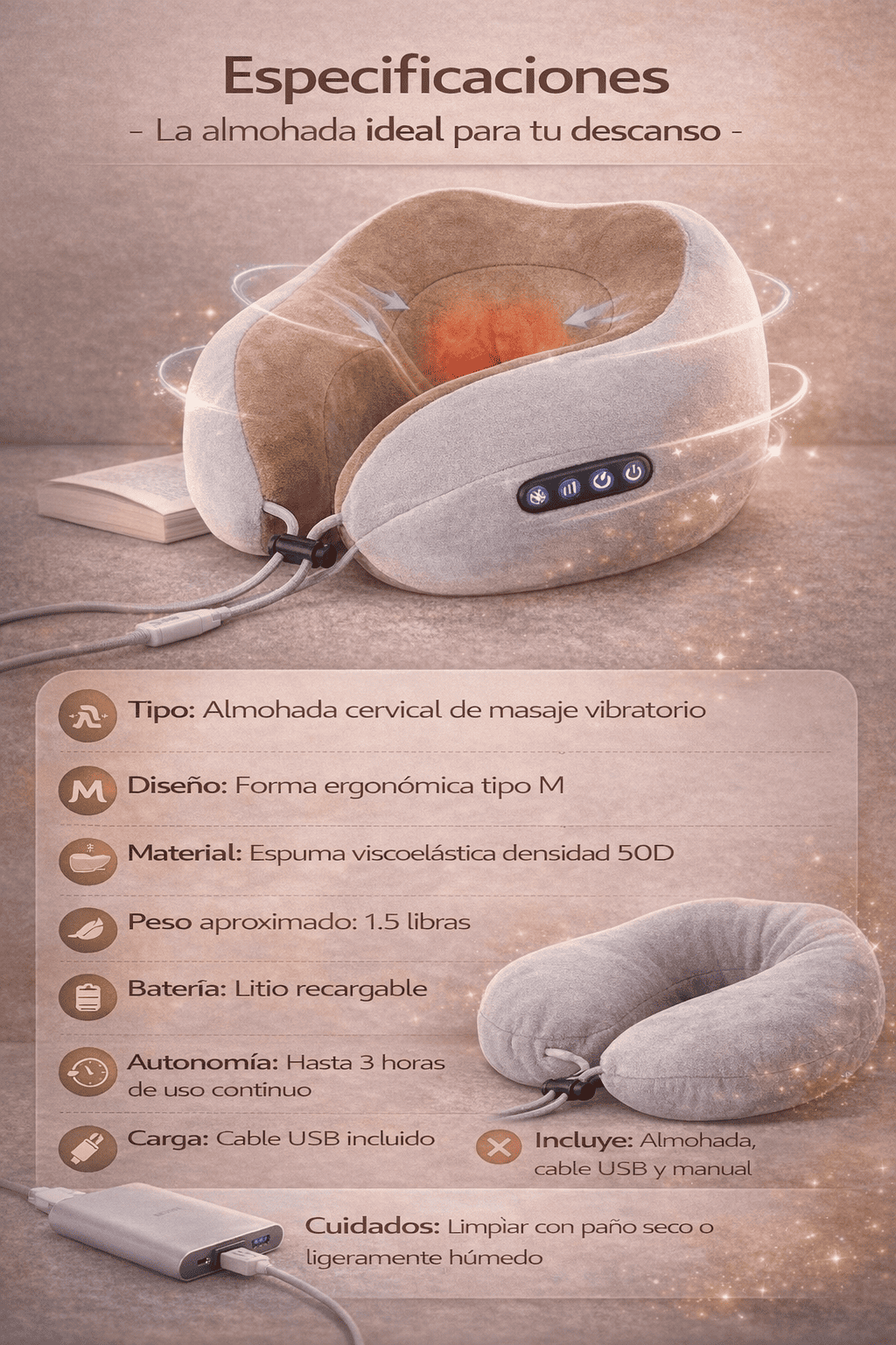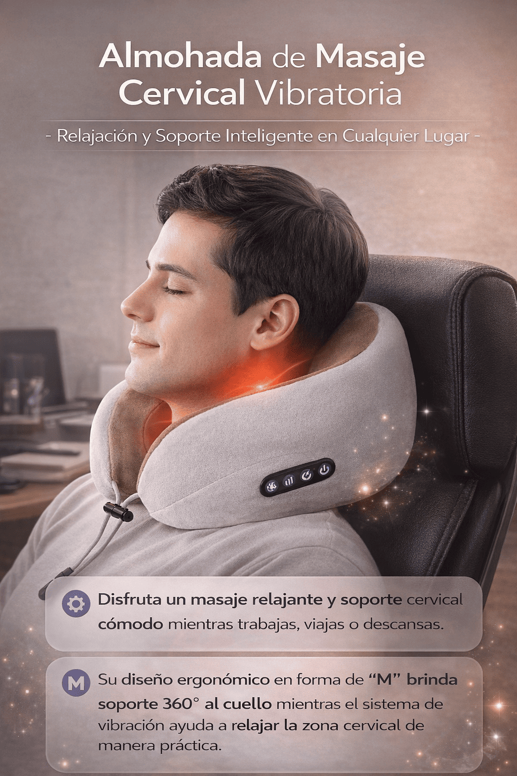 Almohada de Masaje Cervical Vibratoria – Relajación y Soporte Inteligente en Cualquier Lugar