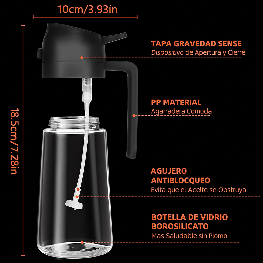 Disfruta de la practicidad de cocinar con precisión: rocía, vierte y controla cada gota de aceite como un chef. Cero desperdicio de tu aceite.