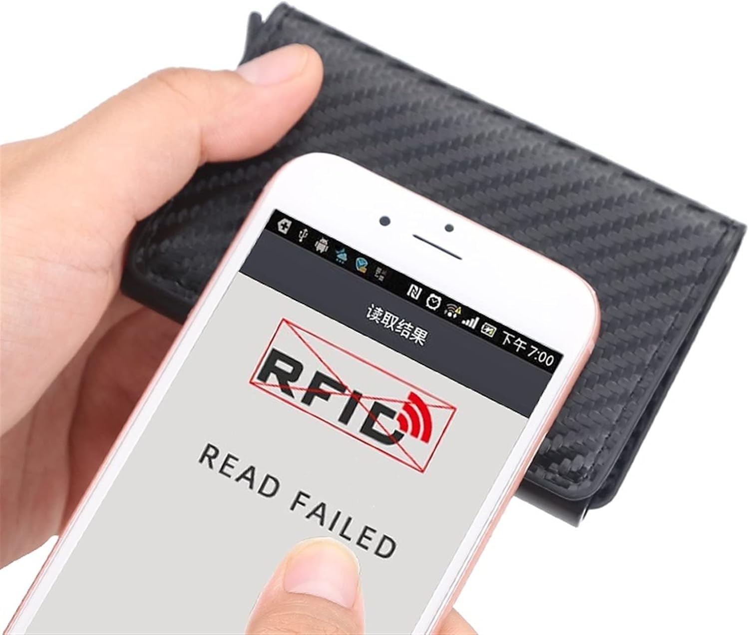 Mecanismo de deslizamiento inteligente, fibra de carbono auténtica y protección contra escáneres no autorizados: todo en un accesorio que cabe en tu bolsillo.