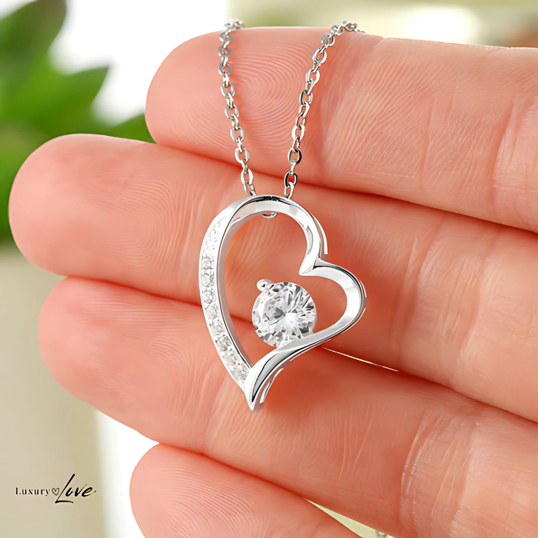 El collar Amor Eterno es una obra maestra de alta calidad. Cuenta con un cristal central de circonita cúbica de 6.5 mm de diámetro, rodeado de pequeñas circonitas que añaden un brillo inigualable. Presentado en una hermosa caja de regalo, es el detalle perfecto para sorprender a tu novia y hacerla sentir aún más especial y querida.