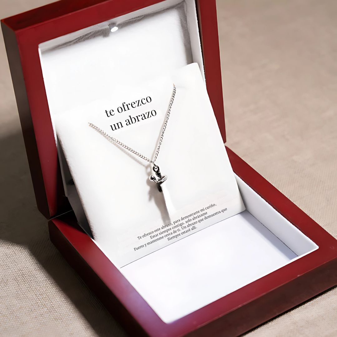 Te doy este abrazo para demostrarte mi cariño, para estar siempre contigo. Solo abrázame fuerte y mantenme cerca. Un abrazo que demuestra que siempre estaré ahí.Este collar es la mejor manera de mostrarle a tu pareja lo mucho que significa para ti.