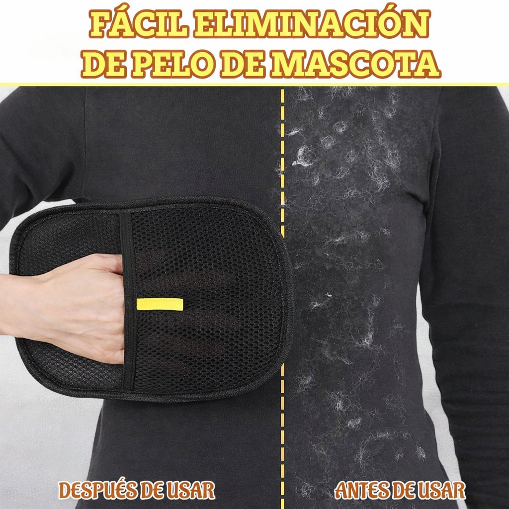 Este guante está diseñado para remover fácilmente el pelo de mascotas de superficies como sofás, camas, sillas, cobijas, ropa y alfombras, atrapando el pelo suelto con solo pasar la mano
