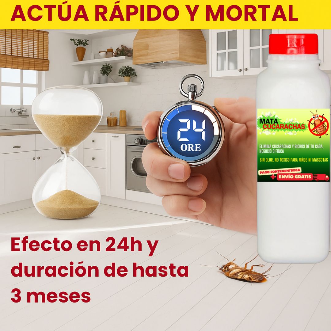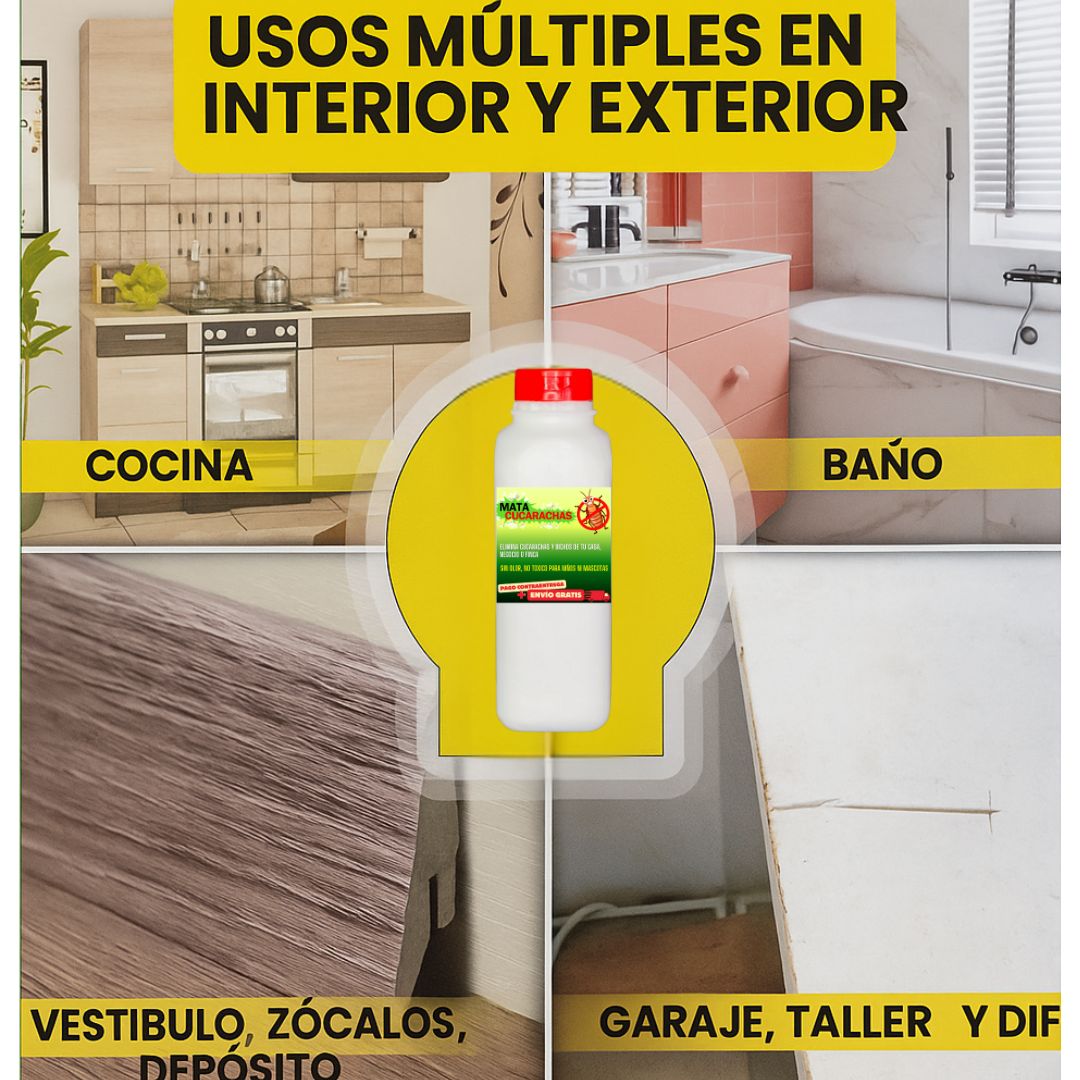 El polvo actúa contra pulgas, piojos, insectos voladores (como moscas y mosquitos) e insectos rastreros (como cucarachas, cucarachas negras, chinches, hormigas y chinches) y contiene ingredientes activos que los eliminan eficazmente. Envenena instantáneamente a los insectos tras consumir el polvo y luego distribuye la toxina para infectar y erradicar la colonia.