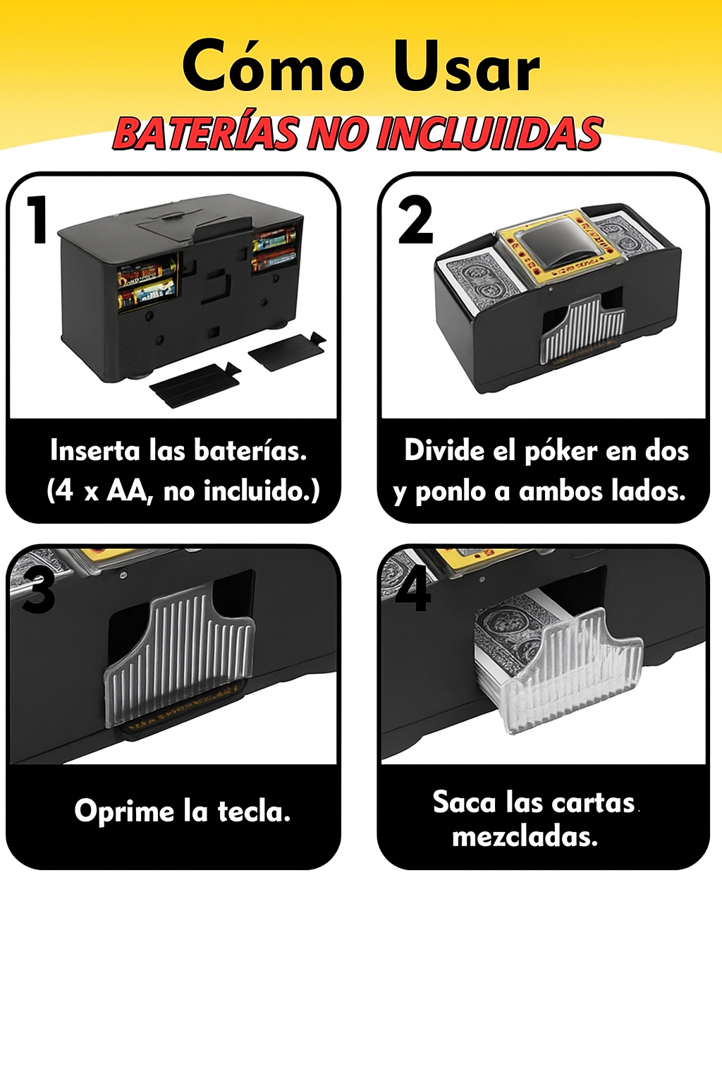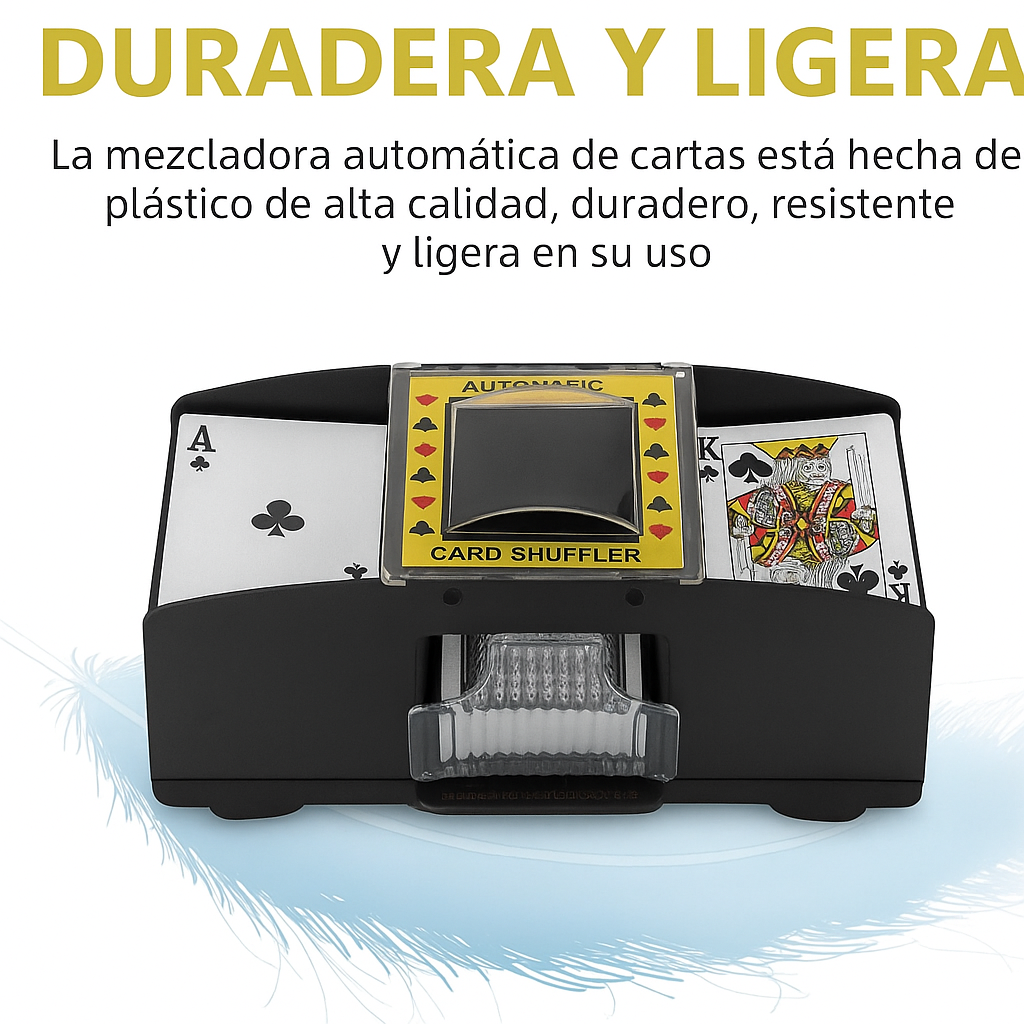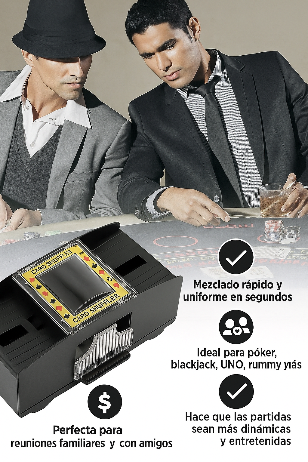 Con un solo botón, tus cartas quedan perfectamente mezcladas, listas para disfrutar tus juegos favoritos sin complicaciones.