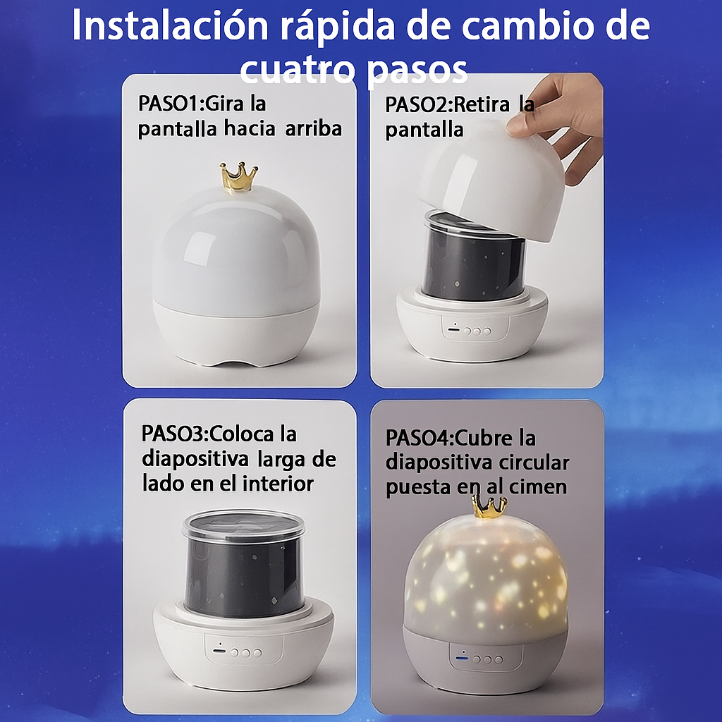 Ideal para relajarte después de un día largo, crear un momento romántico o ayudar a los más pequeños a dormir sin miedo.