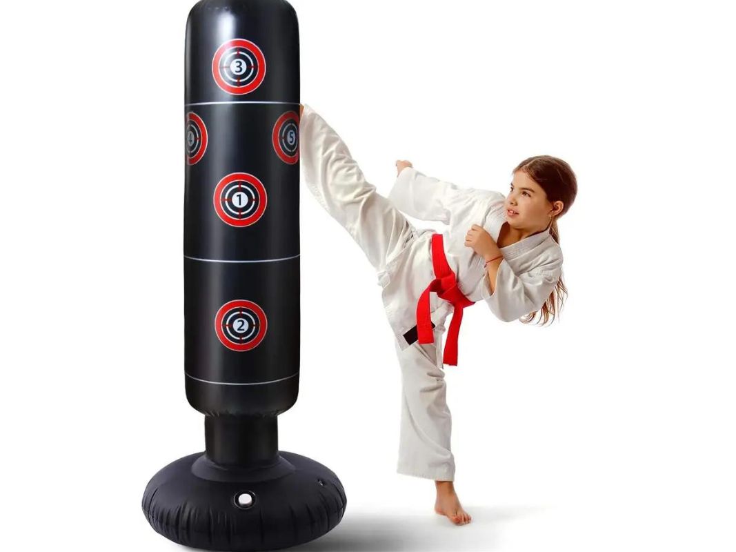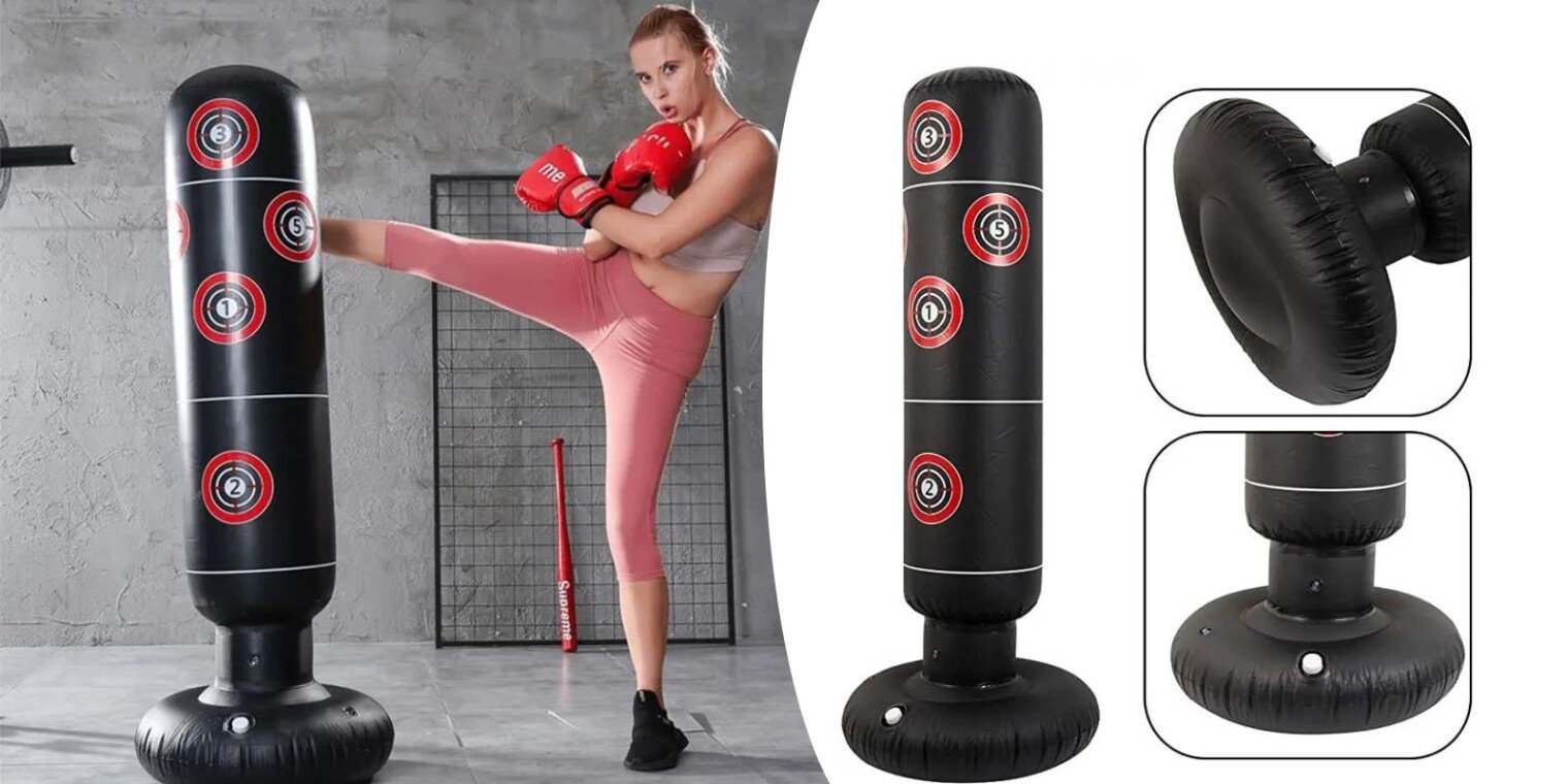 El saco de boxeo inflable PunchingBag es muy fácil de guardar. Una vez desinflado y plegado, se puede guardar fácilmente en un armario o bolso. Además, puedes llevártelo de viaje y no renunciar a tu entrenamiento diario, ni siquiera en vacaciones. Una excelente opción para quienes valoran tener mucho espacio en casa o están a menudo de viaje.