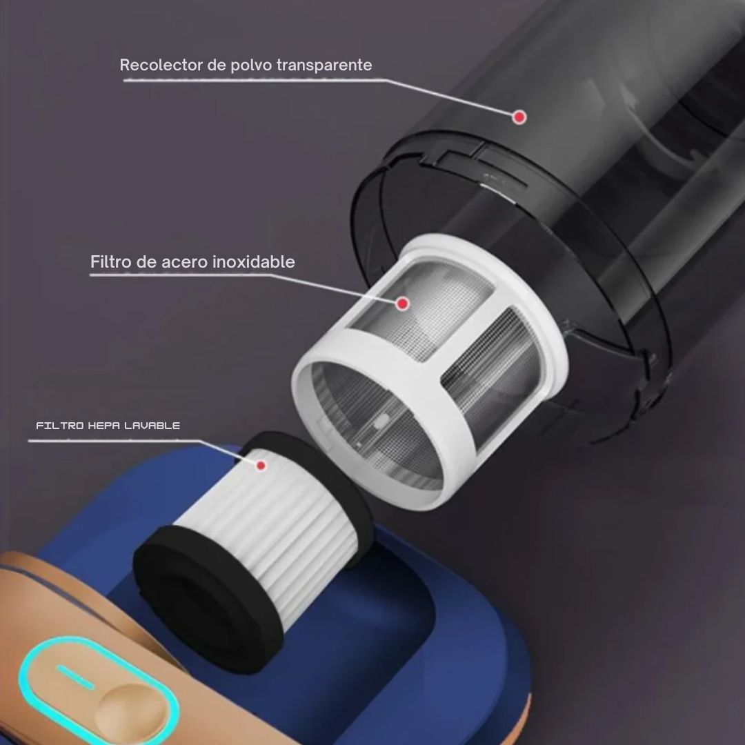 Elimina el 99% de los ácaros con su potente sistema de succión ciclónica.