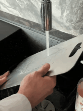 No, las tablas de cortar de titanio son suaves con los cuchillos. Sin embargo, independientemente de dónde cortes, el uso de un cuchillo inevitablemente causará cierto desgaste con el tiempo. Es mejor afilar tus cuchillos ocasionalmente que correr el riesgo de ingerir microplásticos o bacterias, algo común en otras tablas.