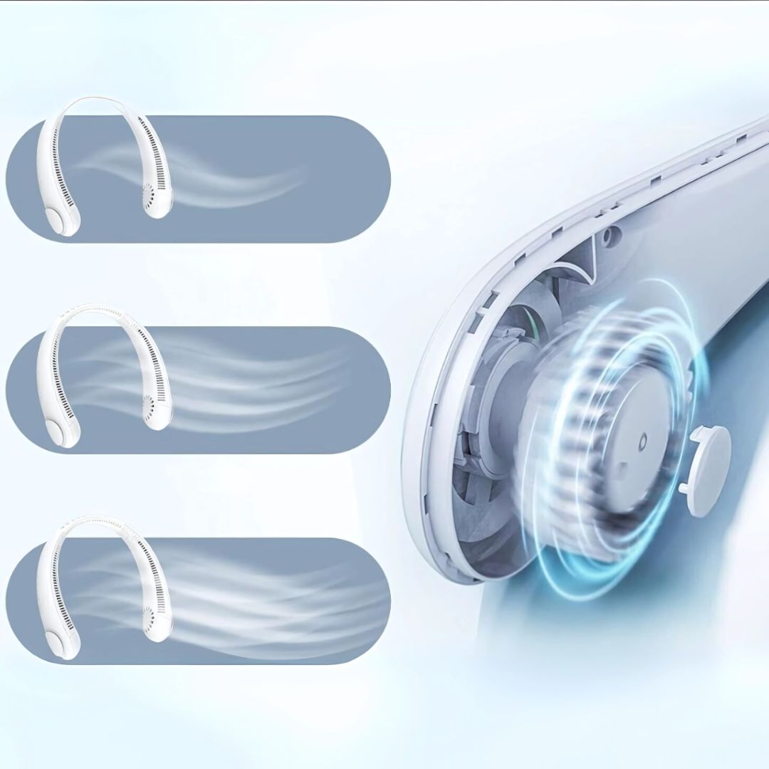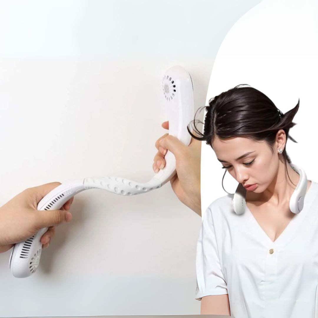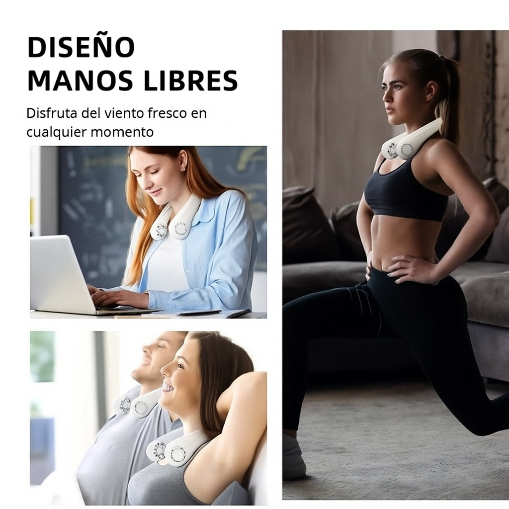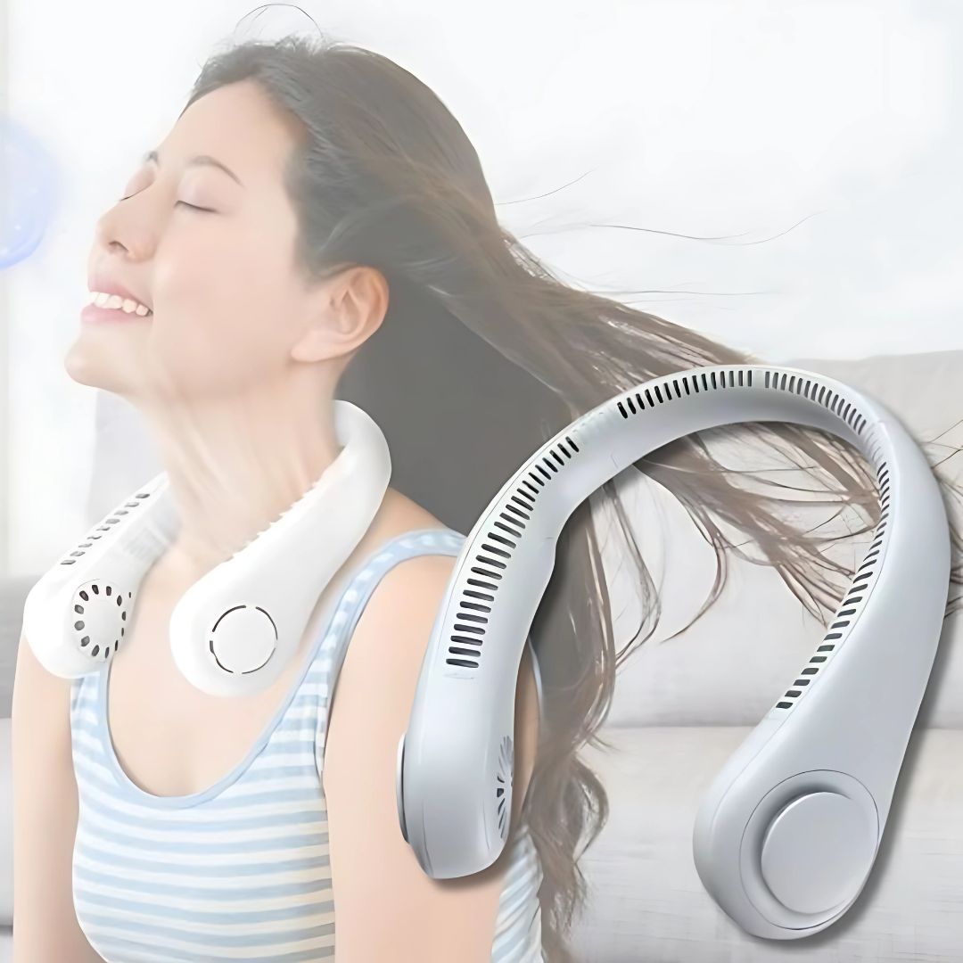 ¡Un ventilador portátil que se coloca alrededor del cuello refrescará agradablemente toda la zona del rostro y el cuello!
